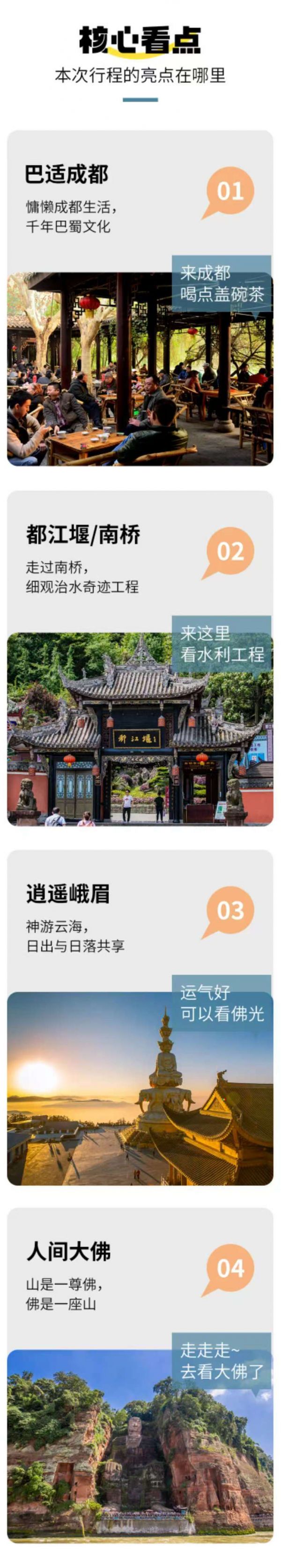 門票:樂山大佛門票、峨眉山門票、報國寺門票、熊貓基地景區(qū)門票、都江堰景區(qū)門票
