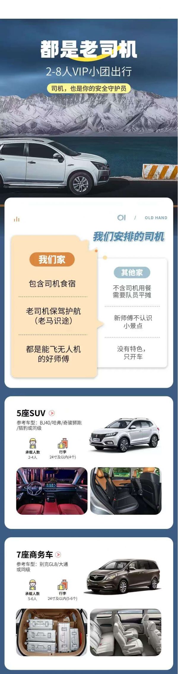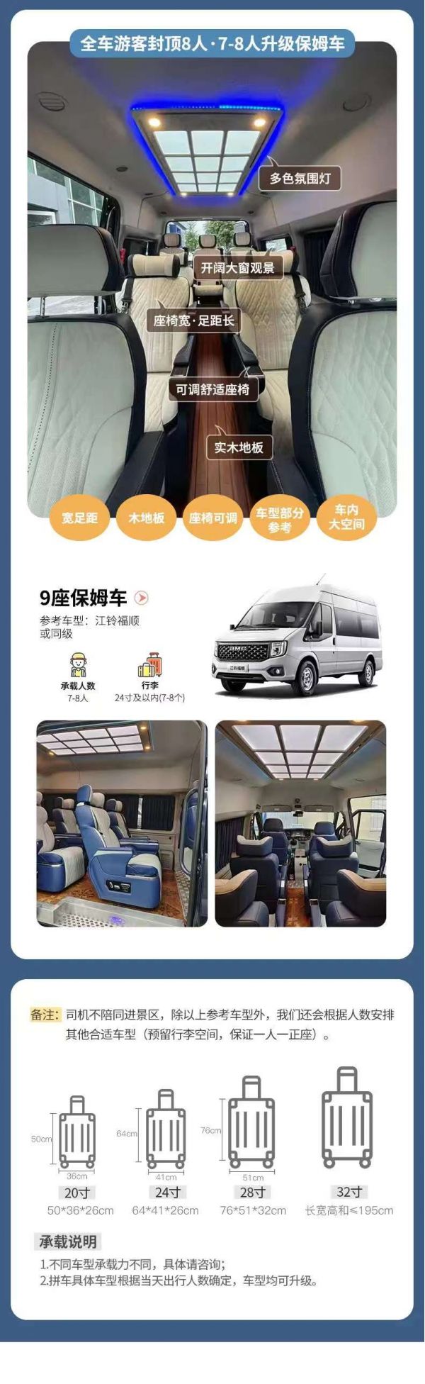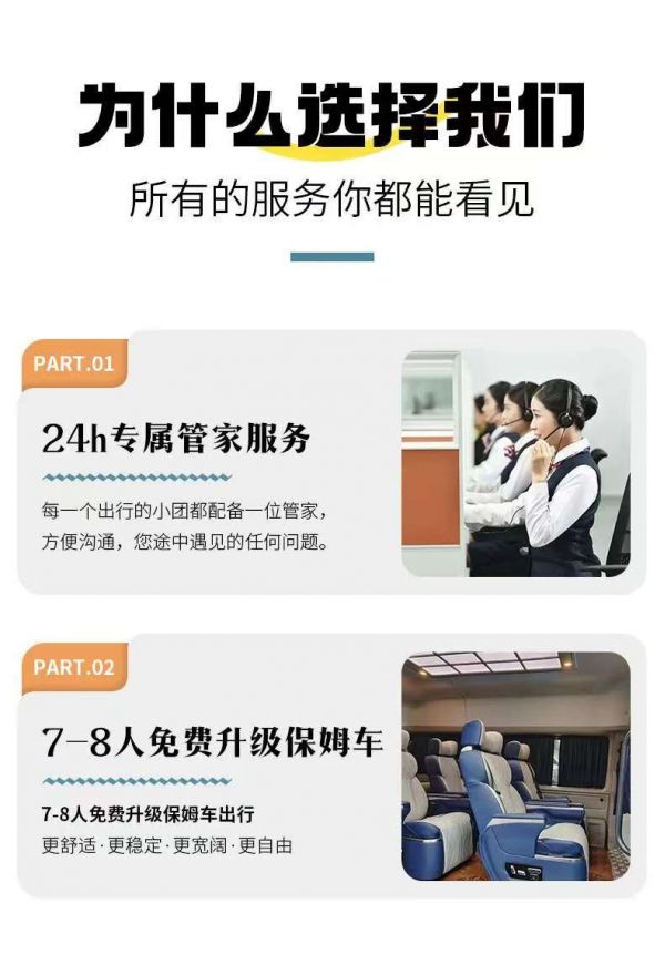 為保證成團及質量,根據(jù)人數(shù)派不同座位數(shù)用車,保證每人一正座;