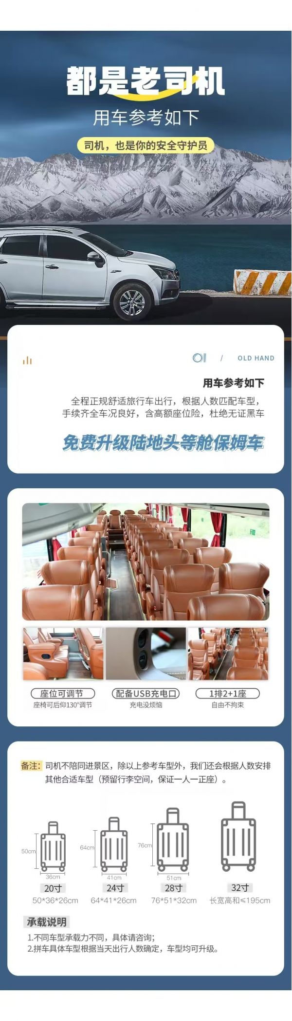 注意事項:出發(fā)前一天晚上18:00-22:30通知接你的具體時間,請務必保持電話暢通(接早的時間根據(jù)師傅線路決定,為保障整個團隊的順利出行請注意配合時間安排,感謝理解)