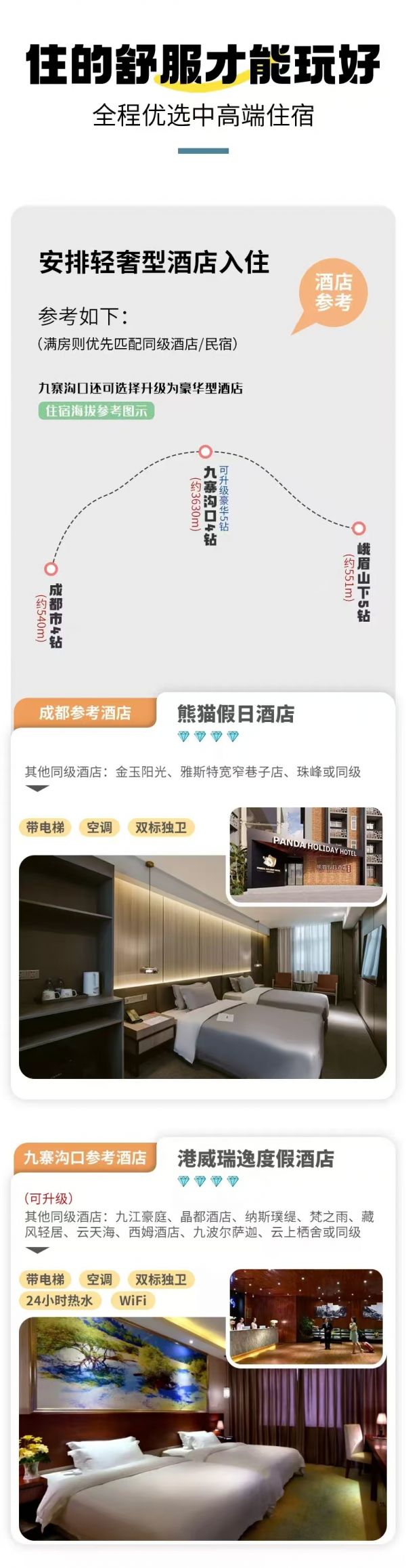 住宿:成都集合日贈送攜程4鉆酒店1晚