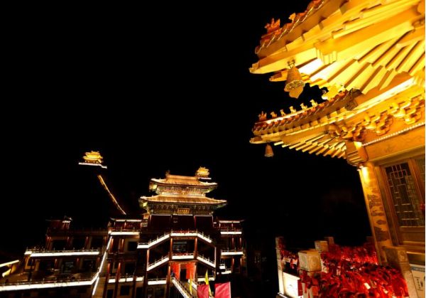 觀看夜晚金頂燈光秀之后下山,晚餐后住宿酒店。