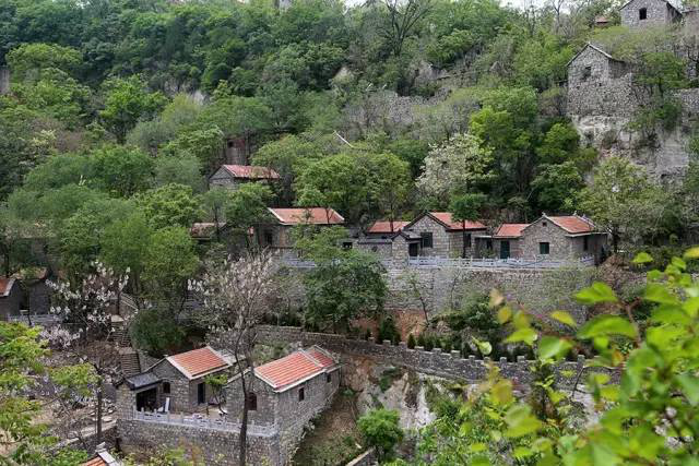 最讓人驚訝的莫過于建于懸崖峭壁上的房屋。村莊三面環(huán)山,以斷崖為障,隱于樹木之間。各種石頭砌成的房子,依山就勢(shì),高低錯(cuò)落,或依傍于懸崖旁,或坐落于巨石之上,懸崖最高處達(dá)60余米。從山下望上去,房子就象掛在天上,青石板路圍著山腰轉(zhuǎn)了幾轉(zhuǎn),好像絲帶在山間飄舞,所以村子得“天上的村落”之美名。