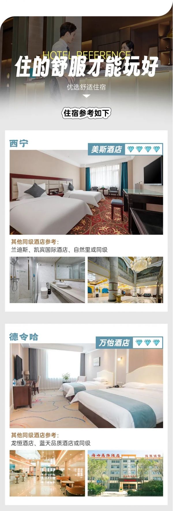 3.到達(dá)西寧后自行前往指定酒店入住,辦理入住時需要交押金,房費(fèi)已付,押金自理,報姓名拿房卡。