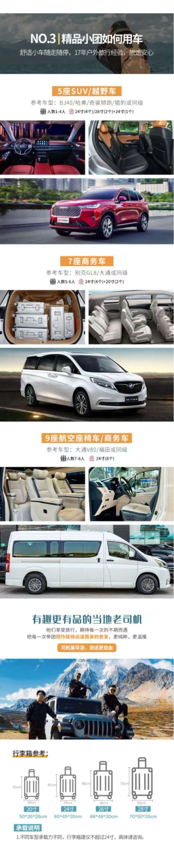 服務:由經(jīng)驗豐富的司機供向?qū)Х眨ㄋ緳C不進景區(qū))。