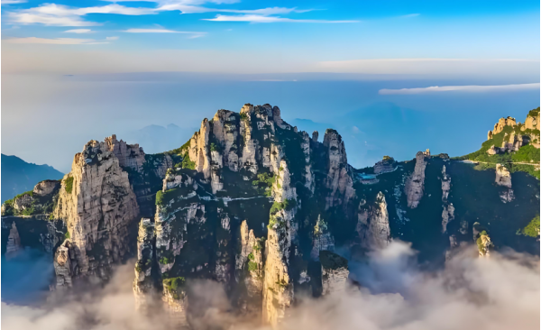 早餐后赴國(guó)家AAAAA級(jí)景區(qū)-白石山景區(qū),從東門(mén)進(jìn)入景區(qū)后上山。隨后游覽白石山國(guó)家地質(zhì)公園,它位于河北省淶源縣城南15公里,雄居八百里太行山最北端,景區(qū)面積54平方公里,最高峰云都峰海拔2096米。整個(gè)景區(qū)集黃山之奇、華山之險(xiǎn)、張家界之秀于一身,并可用“雄”、“險(xiǎn)”、“奇”、“幻”4個(gè)字加以概括。峰高谷深,峰林壁立,落差可達(dá)600米。戰(zhàn)國(guó)時(shí)度嶺分燕趙,遼宋時(shí)一山分兩國(guó)。白石山奇峰林立,絕壁橫陳,險(xiǎn)壑縱布,到處直上直下如刀削斧劈,少曲線(xiàn),多棱角。尤其是峰林地貌帶,高差大,密度大,是我國(guó)惟一的大理巖峰林景觀。