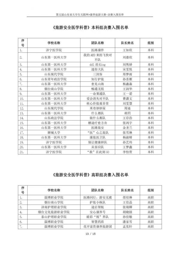 以下鏈接為第五屆山東省大學(xué)生互聯(lián)網(wǎng)+康養(yǎng)旅游大賽決賽入圍名單公示通知原文件:https://mp.weixin.qq.com/s/bd61lqBY3XZJo0ujX1mO_g?scene=1&click_id=2