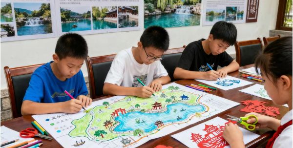 1. 創(chuàng)意制作:學(xué)生以小組為單位,手繪泉水研學(xué)地圖(標(biāo)注探訪泉群位置、特色),或用安全剪刀制作泉水主題剪紙(如黑虎泉虎頭、趵突泉三股水); 2. 主題研討:圍繞“如何保護(hù)濟(jì)南泉水”展開(kāi)討論,每組形成3-5條保護(hù)建議,派代表分享。 |