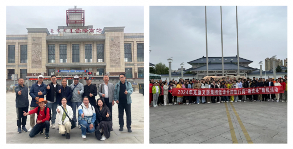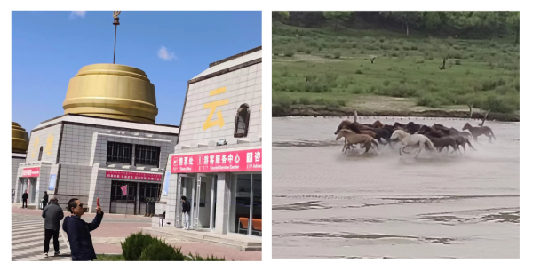 5 月 24 日下午,我們先乘汽車到新鄉(xiāng)東站,又轉(zhuǎn)乘高鐵抵至石家莊站,中轉(zhuǎn)換乘綠皮硬臥奔赴赤峰。幾經(jīng)輾轉(zhuǎn),一路北上,于 25 日清晨抵達赤峰南站。提前在此等候的專車又將我們接到赤峰博物館廣場,與山東省旅行社協(xié)會副會長、聊城市精品旅游促進會旅行社專委會會長、聊城市旅行社協(xié)會會長、山東聊城聊之旅國際旅行社有限公司董事長劉寶平以及來自全國各地的 150 多位旅行商順利集結(jié)。配合克旗文旅集團完成宣傳視頻的錄制后,車隊駛離市區(qū),“玩轉(zhuǎn)克什克騰、暢享草原風(fēng)情”的踩線活動就此拉開帷幕。