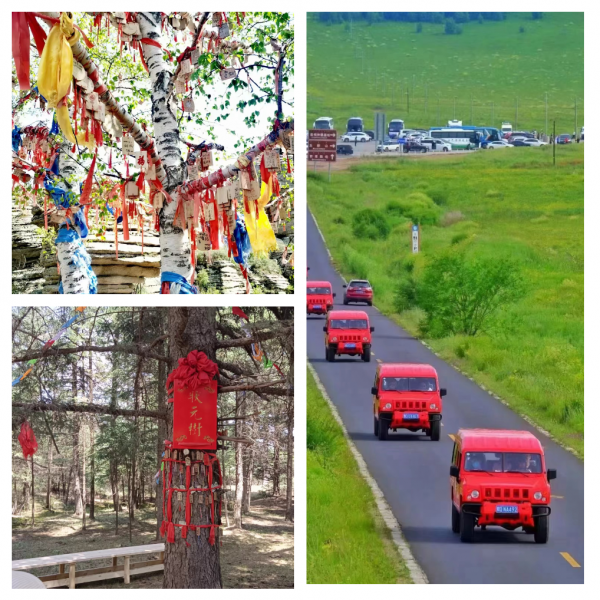 依據(jù)行程規(guī)劃,我們逐一打卡了克旗文旅集團的樺木溝、烏蘭布統(tǒng)、達里湖、白音敖包、阿斯哈圖石林等五大經(jīng)典景區(qū),足跡遍及森林、草原、濕地、湖泊、河流、山梁、丘陵、沙地、石林、火山等多種地形。在樺木溝景區(qū),我們觀賞了極具草原風(fēng)情的紅色實景劇——大型馬術(shù)表演《英雄的鐵蹄馬》,重溫了從“草原騎兵旅”到“朱德騎兵師”那扣人心弦的成長歷程。隨后,我們深入林區(qū),觀摩了薩嶺河灘的萬馬奔騰和馬踏水花等精彩絕倫的臨場表演。其間還分組乘坐“烏蘭勇士”紅色越野車,于草原、沙地、丘陵、溝壑等不同路況中激情穿越。在御景接待中心的歡迎晚宴上,我們品嘗了令人難忘的美酒佳肴,欣賞了美輪美奐的民族服飾和高潮迭起的歌舞節(jié)目,入住體驗了松香四溢的木屋別墅。