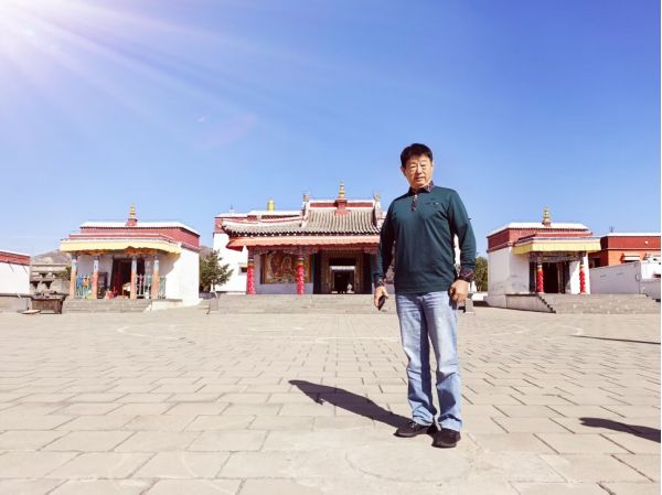 餐后驅(qū)車十幾分鐘,昆都侖召忽然從烏拉山腳下冒出來。藏式建筑趴在山坳里,金頂被太陽照得發(fā)亮,倒像不小心跌進(jìn)草原的一顆星星。