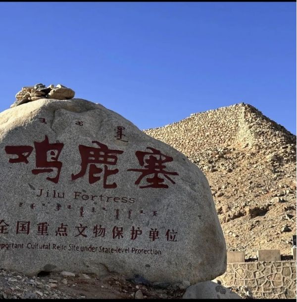 再往前便是“雞鹿塞,”它位于磴口縣狼山哈日嘎納峽谷南口,是漢朝通塞北的險(xiǎn)要隘口,亦屬全國重點(diǎn)文物保護(hù)單位。城塞用自然石塊壘砌,呈方形,邊長68.5米,僅南墻開門且設(shè)甕城,內(nèi)側(cè)有馬道,四角有角臺,城內(nèi)北部還留存石砌房基。