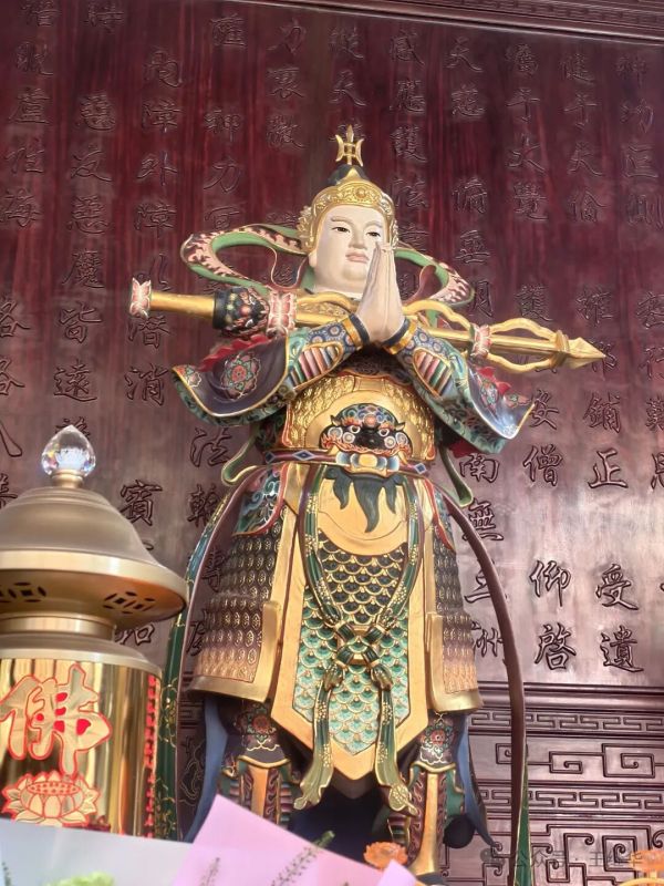 韋馱殿里,韋馱持杵護(hù)法,彌勒笑對(duì)眾生,四大天王的怒目里藏著慈悲。殿前老井的故事里,具足老和尚得觀音指引建廟、井水治愈眼疾的傳奇,更讓人心生敬畏。