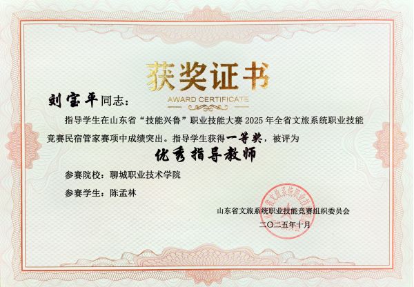 首頁 >> 資訊平臺 >> 劉寶平工作室__Mr. Liu Stu >> 劉老師課堂 >> 大賽指導 >> 2025年指導大賽 >> 【民宿】山東省“技能興魯”職業(yè)技能大賽——2025年全省文旅系統(tǒng)職業(yè)技能競賽民宿管家賽項通知