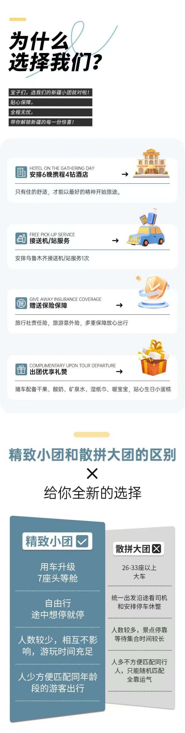本行程為全國(guó) 2-6 人拼團(tuán)(2 人成行/6 人上限),因隨機(jī)組客特性,無法提前篩選拼友的年齡、性別、地域等信息。特別提示:對(duì)社交環(huán)境有特殊要求的游客,建議選擇定制包車服務(wù)。