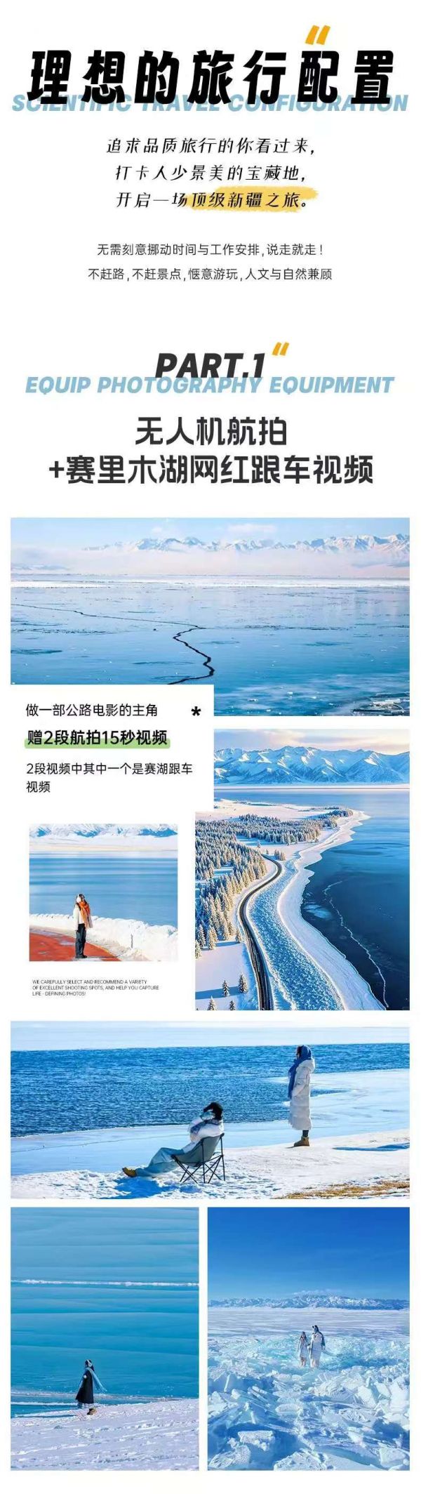 贈(zèng)送無人機(jī)2段15秒視頻(含賽里木湖跟車視頻),(贈(zèng)送項(xiàng)目不去不退,僅限天氣情況良好安排;如遇師傅沒有拍攝2段15秒視頻,退50元/人);