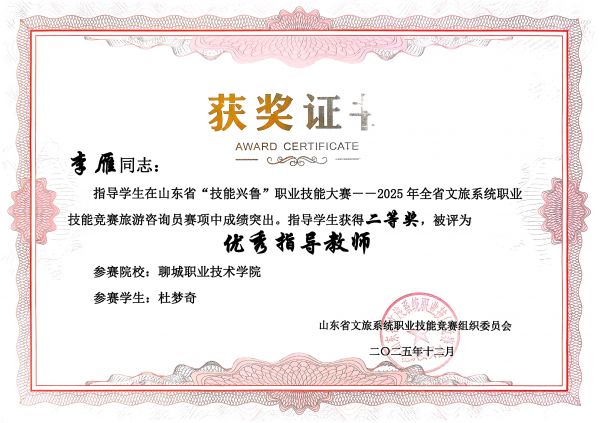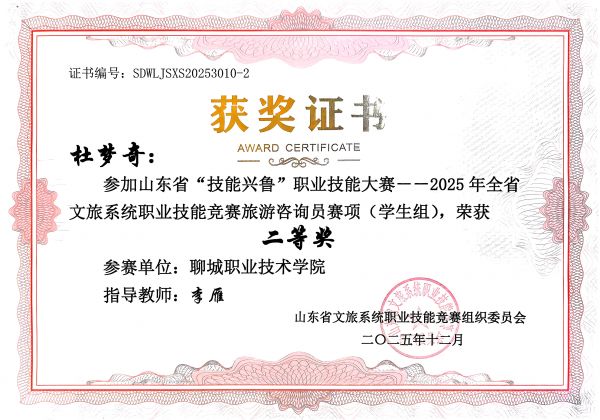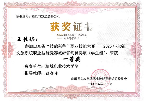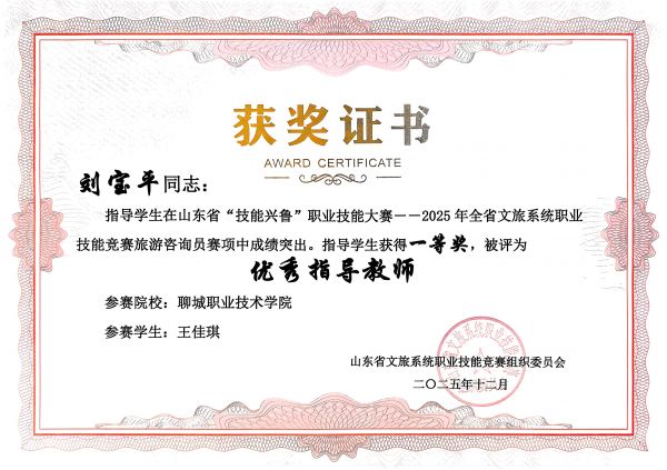 首頁 >> 資訊平臺 >> 劉寶平工作室__Mr. Liu Stu >> 劉老師課堂 >> 大賽指導 >> 2025年指導大賽 >> (旅游咨詢員)山東省“技能興魯”職業(yè)技能大賽——2025年全省文旅系統(tǒng)職業(yè)技能競賽旅游咨詢員賽項