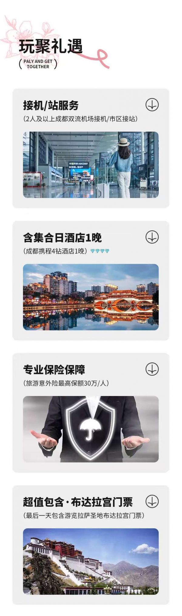 包含甲居藏寨門票、雅魯藏布江大峽谷門票、米堆冰川門票、嘎拉桃花村門票、德格印經(jīng)院門票、巴松措門票、布達(dá)拉宮門票。