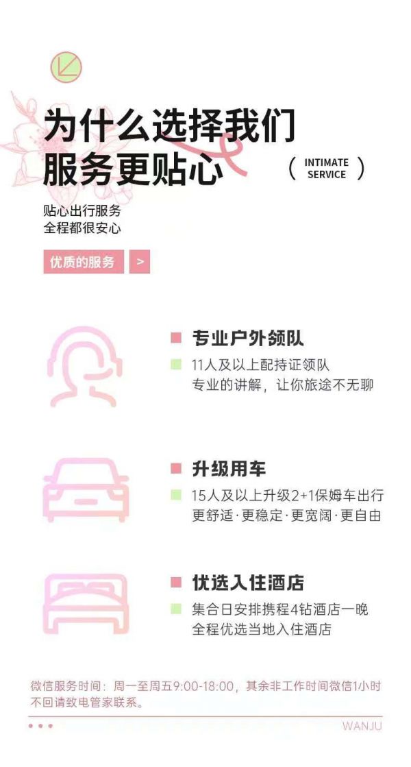 (3)本線路沒(méi)有“代購(gòu)業(yè)務(wù)”,請(qǐng)不要在團(tuán)隊(duì)中或者完團(tuán)后,請(qǐng)求駕駛員代購(gòu)任何產(chǎn)品,如有需要請(qǐng)自行篩選、購(gòu)買。