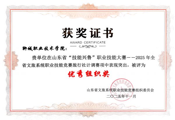 山東省“技能興魯”職業(yè)技能大賽—2025年全省文旅系統(tǒng)職業(yè)技能競賽旅行社計調(diào)賽項優(yōu)秀組織獎