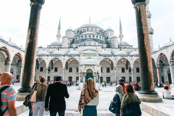 耗時七年建成的蘇丹艾哈邁德清真寺,又稱藍色清真寺,是伊斯坦布爾的地標建筑。墻壁使用了土耳其瓷器名鎮(zhèn)燒制的藍彩釉貼瓷,以白色為底,刻有豐富的花紋圖案,使得整個清真寺內(nèi)都充滿了藍色。清真寺是伊斯坦布爾最大的圓頂建筑,四周建有六座宣禮塔,是全世界唯一擁有六座高塔的清真寺,世界十大奇景之一。
