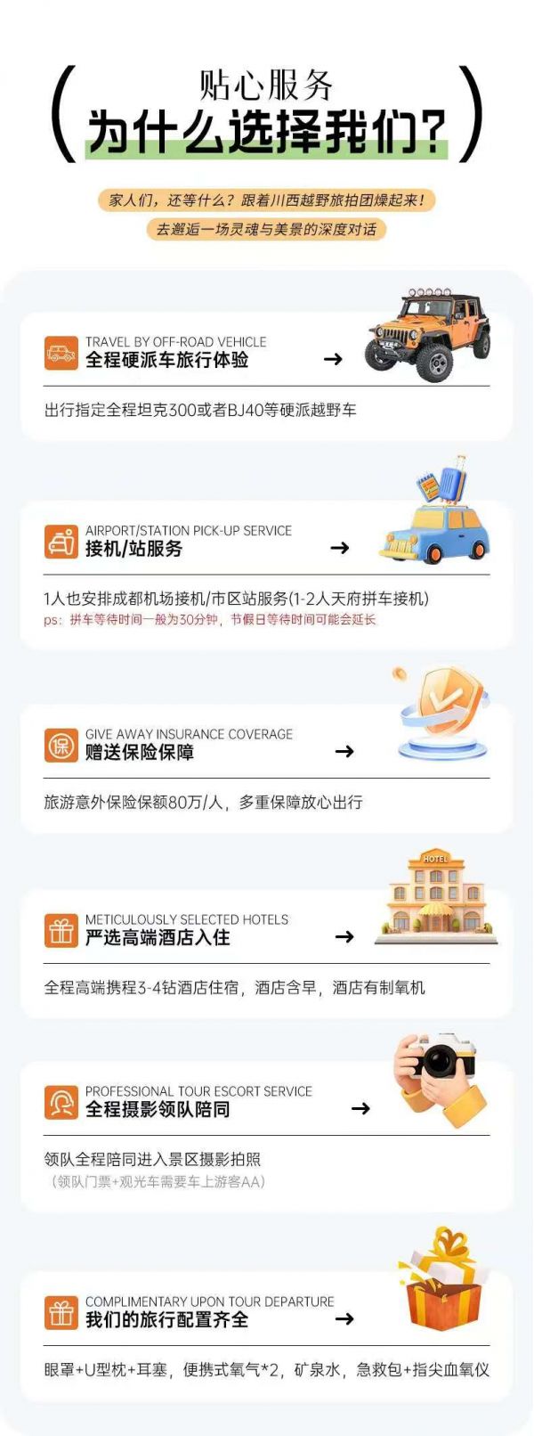 注:4人越野小團(tuán)不會(huì)額外收取魚子西/格底拉姆/八郎生都擺渡車費(fèi)用。