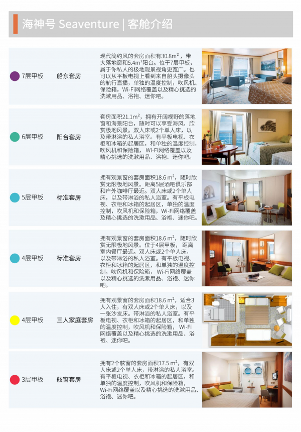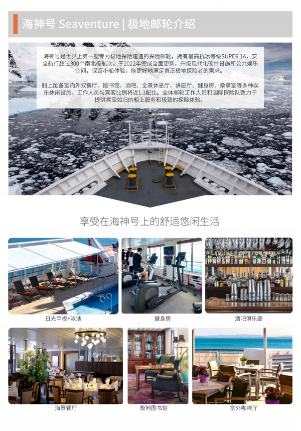 √郵輪設(shè)備設(shè)施和服務(wù)及極地目的地的介紹來源于參考材料,如果與實(shí)際有出入那么不視作旅行社違規(guī)。
