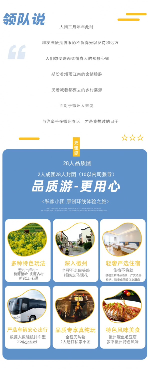 下午徒步蜀源靈山,在養(yǎng)分充足的春天里,漫步花海叢中,感受古老歷史下的小城。約3:00左右結束行程,返程 預計下午16:00抵達黃山市區(qū),建議購買16:30以后或次日返程票。