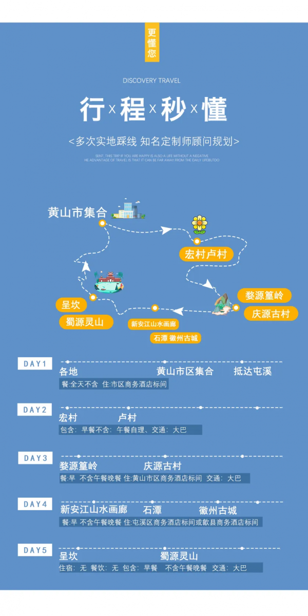 【返程與解散】解散日預計下午16:00抵達黃山市內,建議購買16:30以后或次日返程票。