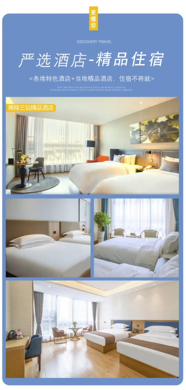 1、活動集合前3天會有工作人員告知您酒店的名字、地址、電話及溫馨提示等相關信息,各位團友請留意查收并及時回復。