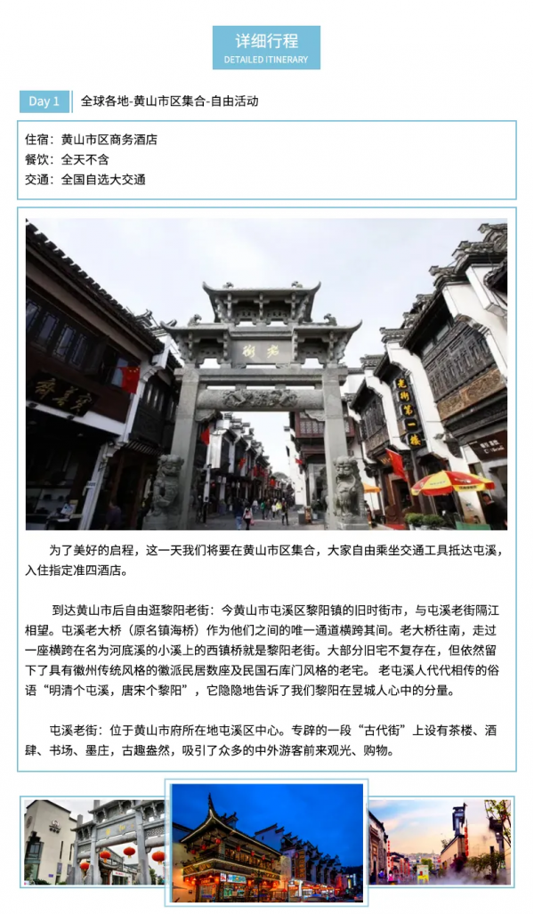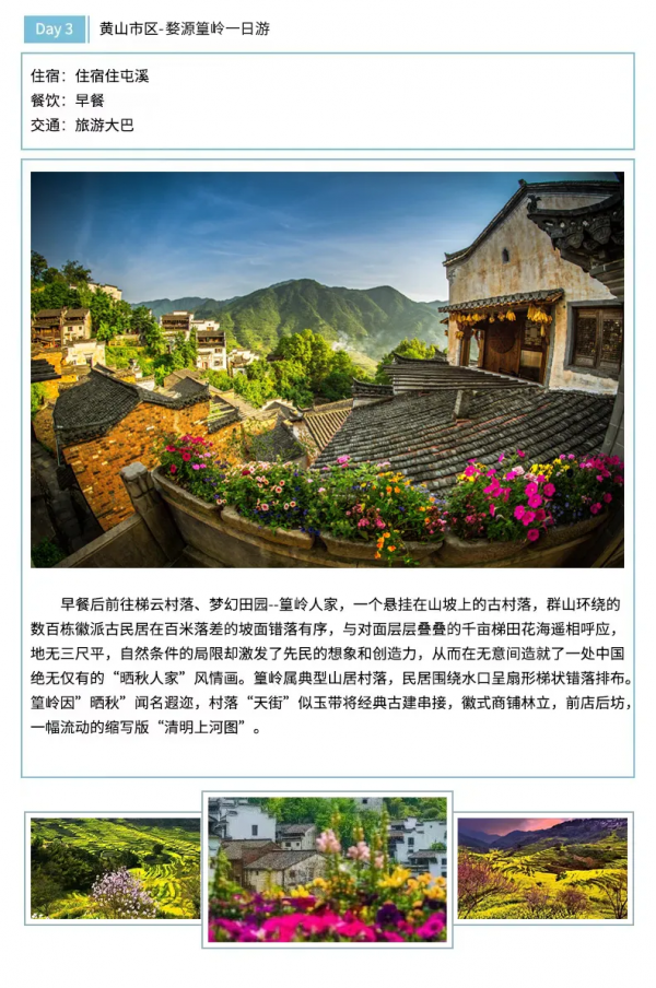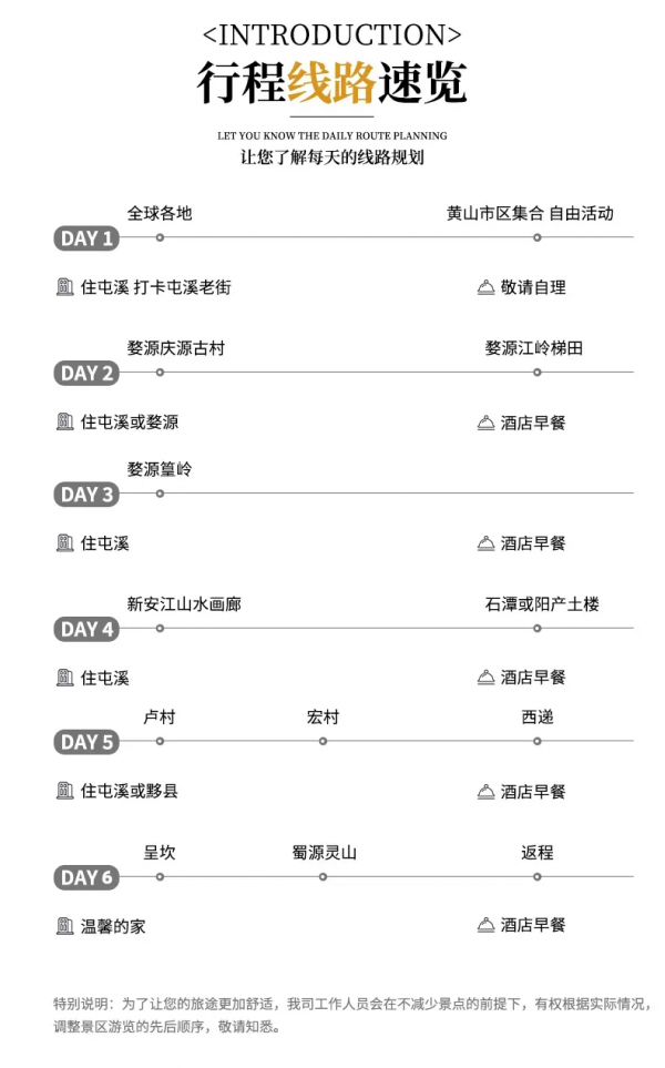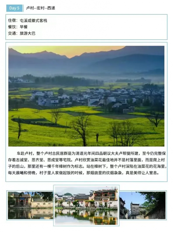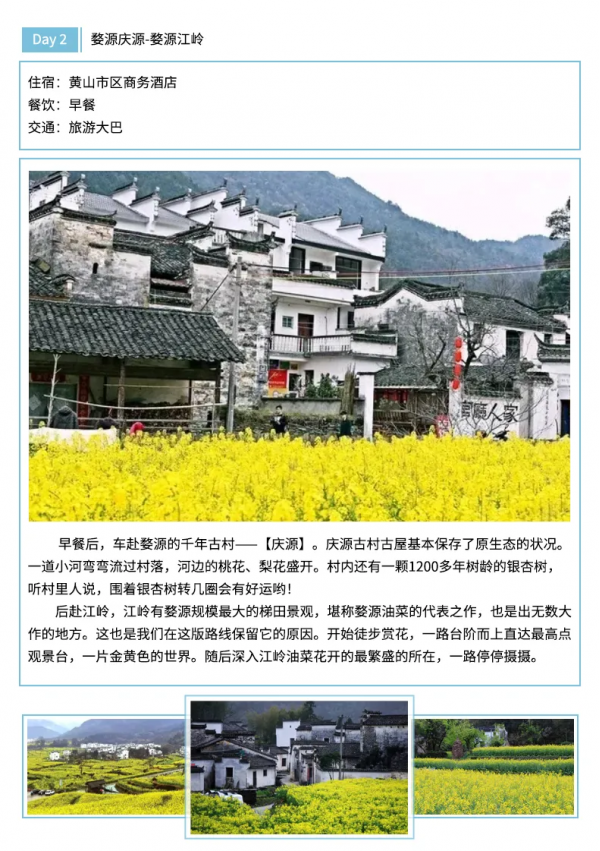 住宿:5晚屯溪標(biāo)間住宿或婺源一晚農(nóng)家住宿和西遞客棧住宿