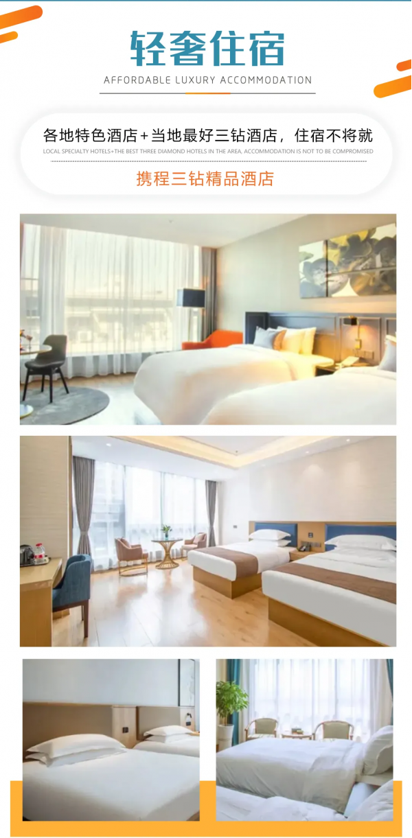 行程中的所列的酒店類型,2星/2鉆=經(jīng)濟(jì)型;3星/3鉆=舒適型;4星/4鉆=高檔型;5星/5鉆=豪華型;意為評(píng)定或條件到達(dá)相應(yīng)標(biāo)準(zhǔn)的酒店,少部分地區(qū),由于政策等因素,可能存在酒店條件滿足,但未進(jìn)行星鉆評(píng)定的情況。