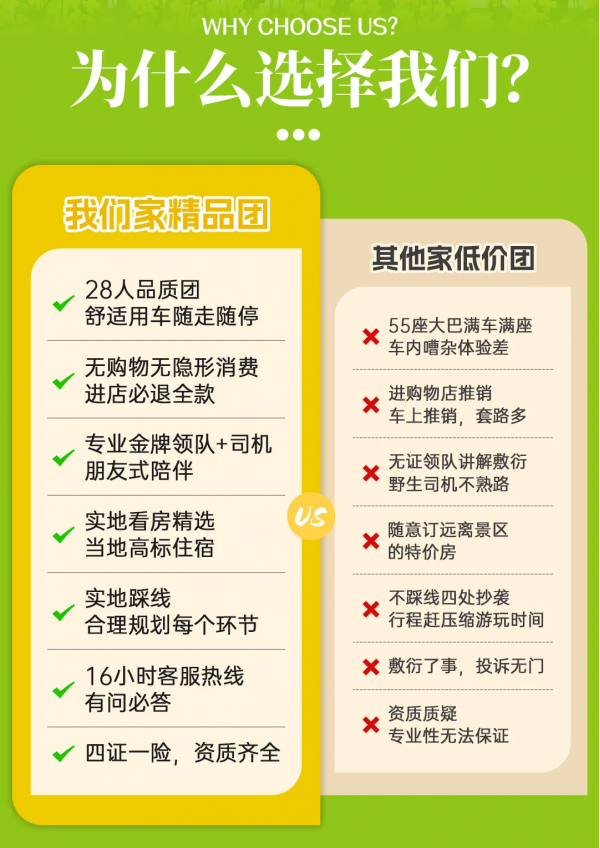 2、客人自身原因返程無(wú)法跟車返回,可以退單程景交19元/人。如果因?yàn)檐囎釉驘o(wú)法安排,退返程車費(fèi)+單程景交費(fèi)38元/人。