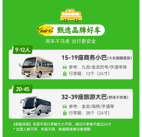 行程中旅游包車費用,油、路、橋費,11-38座用車,保證一人一正座