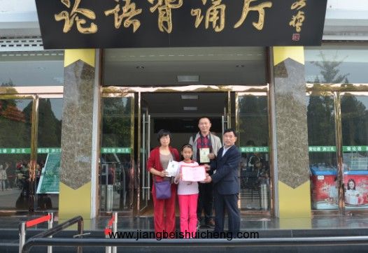 “背論語免費游三孔”活動自2013年“五一”正式推出以來,得到了社會各界的一致好評和積極參與。10月2日上午11時,在曲阜論語背誦廳,來自濟寧市附小的9歲女孩周若禺順利通過論語背誦測試,并幸運的成為活動舉辦以來的第1萬名通過背誦測試的游客。