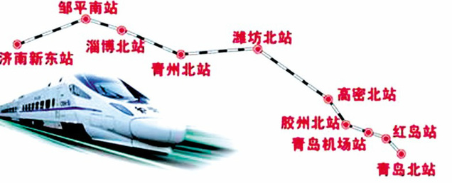 隨著環(huán)境影響報(bào)告書的完成,濟(jì)南東站、鄒平南站、淄博北站、青州北站、濰坊北站、高密北站、膠州北站、青島機(jī)場站和紅島站等9大車站也得以最終確定。9座車站中,濟(jì)南東站和紅島站為始發(fā)站,其余7站為中間站。其中濟(jì)南東客站設(shè)動(dòng)車運(yùn)用所;紅島站則設(shè)動(dòng)車停車場。