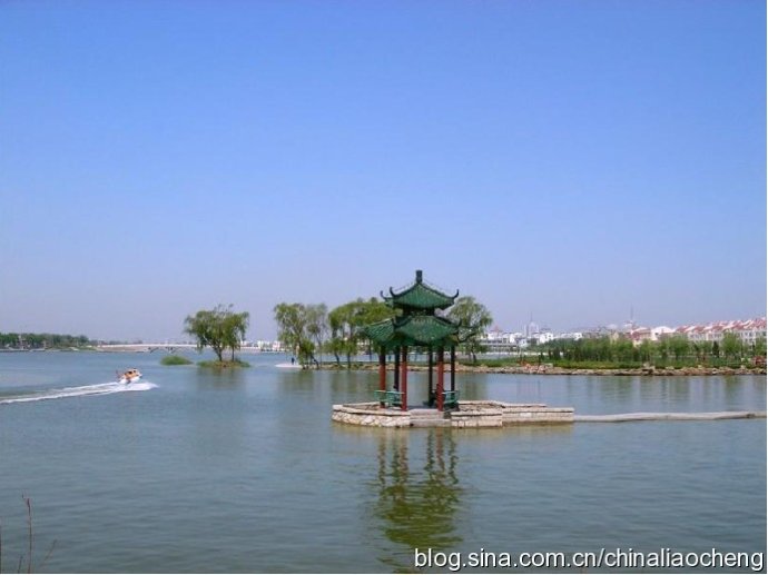 聊城是一座碧波蕩漾的水之城,是一個與水結(jié)緣的地方,說起聊城,總也離不開一個水字。聊城水資源非常豐富,流域面積30平方公里以上的河流有23條,流域面積在100平方公里的河流有3條,中華民族的母親河——黃河由西向東蜿蜒百里。素有“南有西子,北有東昌”之稱的東昌湖,千頃湖水,清如許,明如鏡,煙波浩淼的碧水環(huán)繞著保存完好的古城。聊城古城面積1平方公里,方方正正,大街小巷并列對稱,垂直交叉,就像一個巨大的棋盤飄浮在萬頃碧波上。古城中央聳立著號稱中國四大名樓之一的光岳樓,氣勢恢弘,巍峨壯觀。馳名于世的京杭大運河像一條玉帶繞城、湖而過。華夏名樓、歷史名城、江北名湖、世界名河共同織就了“城中有水,水中有城,城水一體,交相輝映”的獨特城市風(fēng)貌。說起水城,我想大家一定會聯(lián)想到世界水城威尼斯,其實,早在威尼斯還是荒原一片的時候,聊城的運河里已經(jīng)是帆檣林立了。蜿蜒的水巷,流動的清波和豐富的水景觀讓聊城成為遠近聞名的江北水城。