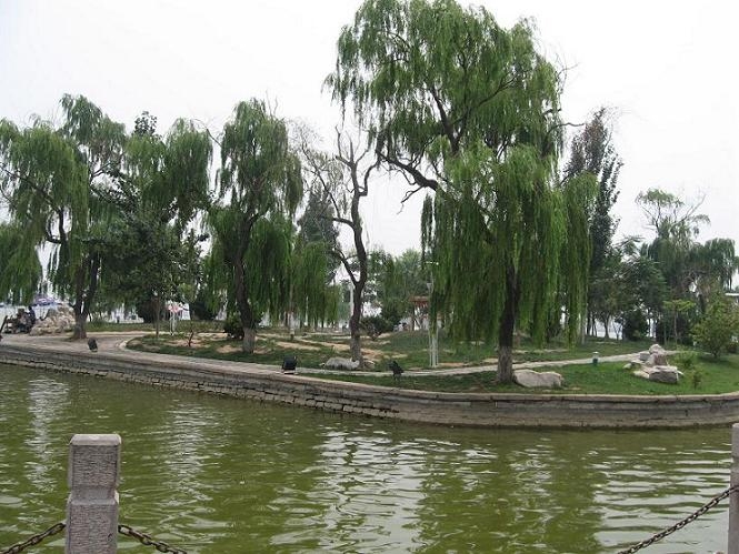 東昌湖水域面積6.3平方公里,與杭州西湖相當(dāng),是南京莫愁湖的18倍;平均水深3米,蓄水量是杭州西湖的2倍。“一湖翡翠千重秀,清風(fēng)瀲滟蕩古城。”您現(xiàn)在看到的就是風(fēng)光旖旎、聞名遐邇的東昌湖,東昌湖又稱胭脂湖,中國(guó)古典名著《聊齋志異》中的一篇胭脂的故事就發(fā)生在這里。東昌湖始掘于宋熙寧三年,筑城取土而成,城外自然成河,恰似一條美麗的玉帶環(huán)繞古城。它與杭州西湖、南京莫愁湖并譽(yù)為我國(guó)三大美女湖。東昌湖是一個(gè)美女湖,可是有根據(jù)的哦,在《聊齋志異》中,傳說(shuō)東昌湖是美女胭脂浣紗的地方。說(shuō)起東昌湖的成因,也與美女有著不解之緣,相傳很久以前聊城一帶下起了滂沱大雨,平地一片汪洋,在城南百余里處黃河又決了口,圍著城池沖出一個(gè)湖來(lái),遼闊無(wú)邊,深不可測(cè)。有一年王母娘娘和玉皇大帝帶著仙女仙童云游至此,見(jiàn)這偌大湖面清澈透明,映出五彩霞光,留戀多時(shí)不肯離去。這時(shí)隨行而來(lái)的雌凰仙子看出了王母和玉帝的心思,于是奏道:"如此數(shù)千畝碧波勝過(guò)天庭瑤池,何不令小仙在此種花植樹(shù)、建亭設(shè)苑以供游憩之用?"王母、玉帝應(yīng)允了此事,從此雌凰仙子留于當(dāng)?shù)兀杏谑怯辛肆菙€尖飛檐亭,奇花異草遍布,岸邊則綠樹(shù)成陰,柳浪翻滾。如今的胭脂和仙女都已遠(yuǎn)去,不過(guò)煙波浩淼的湖泊,流光溢彩的河流,成為這座城市富貴的財(cái)富。二十世紀(jì)九十年代以前,東昌湖岸邊雜草叢生,沼澤滿地,垃圾隨處傾倒。東昌湖像一位蒙塵蒙垢的少女,靚麗的風(fēng)姿蕩然無(wú)存。九十年代后,巧借京九鐵路、邯濟(jì)鐵路、濟(jì)聊館高速公路三路建設(shè)用土,新建聊城電廠用水,投入資金1.1億元,對(duì)東昌湖進(jìn)行清淤整治。可以這樣說(shuō),在中國(guó)江北,還沒(méi)有哪一座城市擁有這樣多的水,它南依黃河,是中華母親河的乳汁滋潤(rùn)了這片肥沃的土地。綜觀聊城全境,流域面積在30平方公里以上的河流有23條,其中100平方公里以上的有3條。黃河在南部奔騰咆哮東去,古運(yùn)河從中部蜿蜒曲折穿過(guò),衛(wèi)河從西部挾風(fēng)裹浪北流;馬頰河、徒駭河縱橫交錯(cuò),東昌湖、魚(yú)丘湖交相輝映。僅聊城市區(qū),湖、河水域面積就多達(dá)13平方公里,占市區(qū)總面積的三分之一,這一優(yōu)勢(shì)是中國(guó)江北許多城市無(wú)法比擬的。城中有水,水中有城,城水一體,交相輝映的山東聊城,不愧為中國(guó)長(zhǎng)江以北的第一水城。