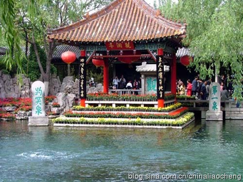 趵突泉景區(qū)在我們公園內(nèi)西側(cè),是全園構(gòu)圖中心,由亭、堂、廊、榭組成了一個(gè)封閉空間,高低錯(cuò)落的建筑像眾星捧月一樣,簇?fù)碇鴩娡或v涌的趵突泉,人們可以從不同的角度欣賞泉景,被譽(yù)為濼水之源,在史書上第一次出現(xiàn)是<<春秋>>上關(guān)于魯桓公和濟(jì)襄公談判兩國邊界一事的記載。魯桓公十七年(公元前695年)。齊國和魯國因邊界爭執(zhí)發(fā)生戰(zhàn)爭,次年春,魯桓公到齊國談判邊界問題,會(huì)齊侯(齊襄公)于濼。濼,濼水的源頭,即趵突泉。所以趵突泉為人所知已經(jīng)有二千五、六百年的歷史了。當(dāng)然那時(shí)濼水之源,名字并不叫趵突泉,北魏時(shí),因泉上建有娥姜(英)廟,谷稱娥姜(英)水,直到唐宋八大家之一的北宋文學(xué)家曾鞏始稱為趵突泉,并流傳至今。不過,宋朝.金代曾有人稱叫“溫泉”、“檻泉”、“爆流泉”、“瀑流泉”等等,但都不如趵突泉這個(gè)名字精當(dāng)傳神。