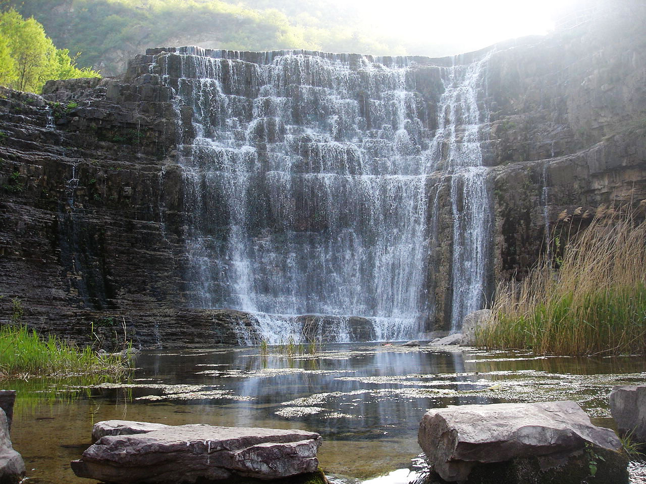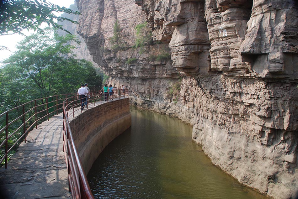 紅旗渠以濁漳河為源。渠首位于山西省平順縣石城鎮(zhèn)侯壁斷下。總干渠長(zhǎng)70.6公里,渠底寬8米,渠墻高4.3米,縱坡為1/8000,設(shè)計(jì)加大流量23秒立方米,全部開(kāi)鑿在峰巒迭嶂的太行山腰,工程艱險(xiǎn)。