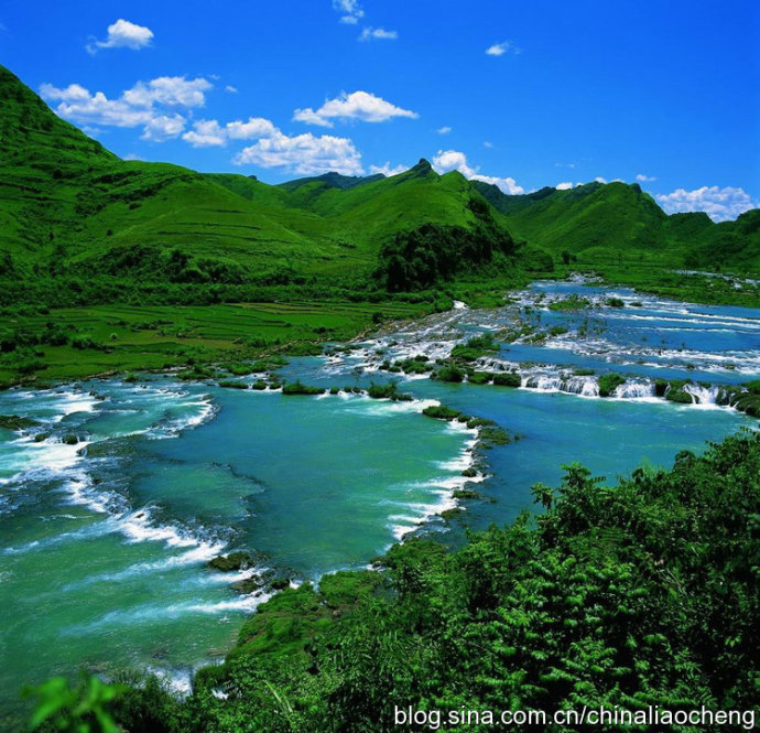在祖國邊陲廣西大新縣,有一個奇特的旅游風(fēng)景區(qū),這就是遠近聞名的山水畫廊德天跨國大瀑布位于廣西大新縣碩龍鄉(xiāng)德天村。大自然竟然情有獨鐘,將山水神秀盡集于此地,形成了數(shù)百里的天然山水畫廊。在這百里山水畫廊中,德天跨國大瀑布是最最出彩的一幅山水圖畫。德天跨國大瀑布位于廣西大新縣碩龍鄉(xiāng)德天村。她橫跨中越兩國,是亞洲第一大、世界第二大的跨國瀑布德天瀑布,中方瀑布寬120米,與越南境內(nèi)的板約瀑布相連,全寬208米,僅次于著名的位于美國——加拿大邊境的尼亞加拉大瀑布。瀑布分三級飛瀉,垂直高度達60余米,氣勢磅礴,蔚為壯觀。其年均水流量是我國著名的黃果樹瀑布水流量的三倍。