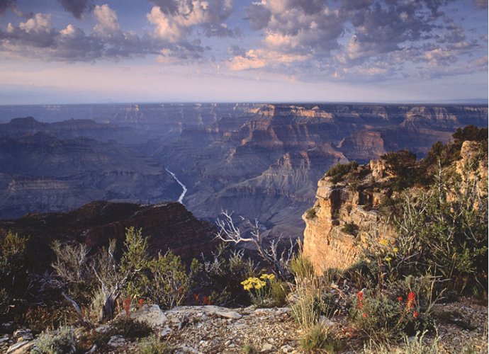 億萬(wàn)年來(lái),奔騰的科羅拉多河從美國(guó)西部亞利桑那洲北部的堪帕布高原中,切割出這令人震撼的奇跡——科羅拉多大峽谷,只要登高遠(yuǎn)望,就可以清楚看到坦如桌面的高原上的一道大裂痕,那就是科羅拉多河在這片洪荒大地上的印記。