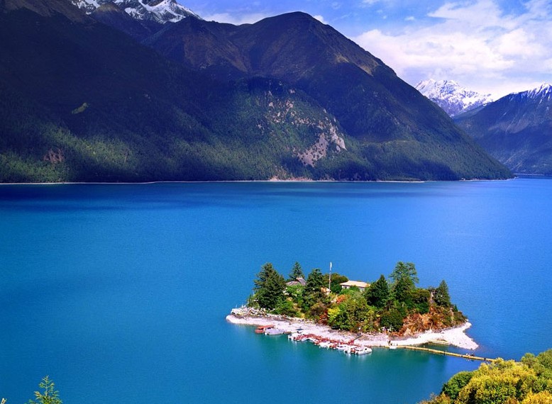 錯(cuò)高在藏語(yǔ)中意為綠色的水,也稱為"巴松錯(cuò)"。它距工布江達(dá)縣50多公里,是紅教的著名神湖。湖形狀如鑲嵌在高峽深谷中的一輪新月,長(zhǎng)約12公里,湖寬幾百至數(shù)千米不等,最深處60多米,總面積6千多畝。湖水清澈見(jiàn)底,四周雪山倒映其中,黃鴨沙鷗白鶴等飛禽浮游湖面,湖中則是游魚(yú)如織,分外寧?kù)o。湖心扎西島上有錯(cuò)宗工巴寺,建于唐代末年。島上的礁石均雕刻成了別致的動(dòng)物形象以及佛像。錯(cuò)宗寺為土木結(jié)構(gòu),上下兩層,殿供強(qiáng)巴佛千手觀音和金童玉女。寺南有一株桃和松的連理樹(shù),春天時(shí)桃花與青松相映,煞是好看。錯(cuò)宗工巴寺寺僧與信從們都乘獨(dú)木舟往來(lái)。每值春季,湖四周群花爛漫,雪峰陳列并倒影湖中,景色宜人至極。湖西北還有一5平方米大的巨石,大石中心有一可供一人鉆過(guò)的洞,據(jù)說(shuō)能鉆此洞可消災(zāi)除病。作為紅教著名的神糊。每年來(lái)此轉(zhuǎn)經(jīng)觀湖的群從非常多。