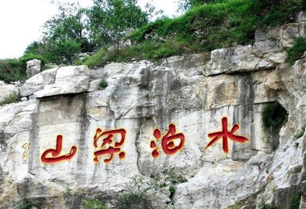 梁山北麓登山處旁邊的懸崖峭壁上有眾多摩崖石刻,集中了當(dāng)代書(shū)法大家的上乘之作,如舒同先生的“水泊梁山”,費(fèi)新我的“草莽名山”,范曾先生的“水泊梁山記”,成為上梁山的重要景觀,其右側(cè)有一座魯智深、武松石雕,稱“雙雄鎮(zhèn)關(guān)”,把守著入關(guān)山隘。