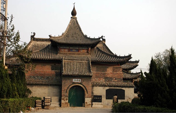 清真寺坐落于臨清市衛(wèi)河?xùn)|岸、先鋒橋畔,俗稱北禮拜寺,是一座保存較為完整的古代建筑群。現(xiàn)存更樓、 月臺(tái)、正殿、傳屏、北講堂等大小房屋80余間。正殿前半部為四阿廡殿頂,正脊兩裝有鴟尾, 后部為重檐,結(jié)頂呈山字形。中為八角攢尖頂,后出抱廈,兩側(cè)各掩一四角攢尖頂。坡度比較大, 森然聳峙,錯(cuò)落有致。版權(quán)所有山東聊城聊之旅國(guó)際旅行社有限公司,轉(zhuǎn)載必究!整組建筑除個(gè)別建筑形式透露著外來(lái)氣息外,基本上屬于當(dāng)?shù)鼗刈褰ㄖL(fēng)格。始建年代無(wú)考,明嘉靖四十三年重修。 1992年,被批準(zhǔn)為省級(jí)保護(hù)單位。