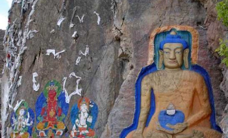 度母神廟往東不遠(yuǎn),有著名的摩崖石刻聶當(dāng)大佛,這是中外觀(guān)光者進(jìn)入拉薩前的一大景觀(guān),幾乎所有的人都要下車(chē)瞻仰度母神廟,并在聶當(dāng)大佛前留影。