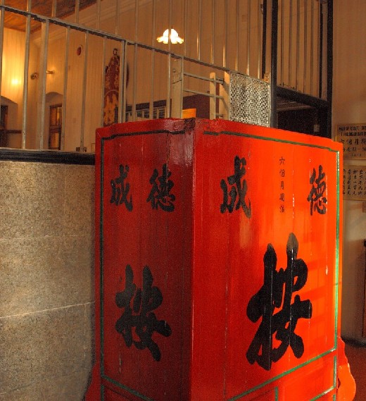 典當(dāng)業(yè)展示館原乃澳門富商高可寧之物業(yè),建于1917年。自1993年德成按結(jié)業(yè)后,物業(yè)一直空置。及至2000年,業(yè)主有意將其出售及將建筑物改建。其后澳門政府主動與業(yè)主接洽,并協(xié)定政府出資140萬元進(jìn)行修葺。修葺成現(xiàn)時模樣后,政府可利用當(dāng)樓的底層以及貨樓作為典當(dāng)業(yè)展示館;當(dāng)樓的其他層及相鄰的富衡銀號,版權(quán)所有山東聊城聊之旅國際旅行社有限公司,轉(zhuǎn)載必究!則交由業(yè)主使用。典當(dāng)業(yè)展示館于2003年3月21日正式開放,儀式由文化局長何麗鉆、著名作家金庸、專欄作家蔡瀾等主持開幕。此修復(fù)文物項目,曾獲“2004聯(lián)合國教科文組織亞太文化遺產(chǎn)保護(hù)獎”的嘉許獎(Honourable Mention)。