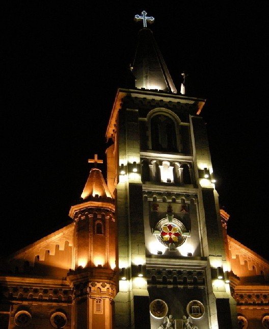 特別值得注意的是,在游街隊伍的后面會有三個牧童打扮的小孩,以此行動紀念當年花地瑪圣母對三牧童顯靈的奇跡。此條路線可以說是現(xiàn)存圣像出巡事例中最長的,所以當?shù)竭_主教山時,就已經(jīng)暮色四合,以至于巡游隊伍需要手持蠟燭照明,黃昏中的主教山燈火輝煌,好似一條長龍閃現(xiàn)在視野中。場面非常的浩蕩壯觀,充滿了濃厚的宗教氣氛。