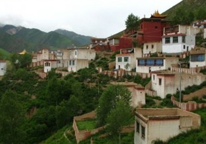 當(dāng)卡寺全稱為(Damkar Lhundrub Dechen Chokhor Ling),位于青海省玉樹州藏族自治區(qū)首府結(jié)古境內(nèi)東面約十公里處,倚山而建,勢(shì)如觀音靜息狀,下以八龍盤據(jù)之態(tài),莊嚴(yán)神圣。