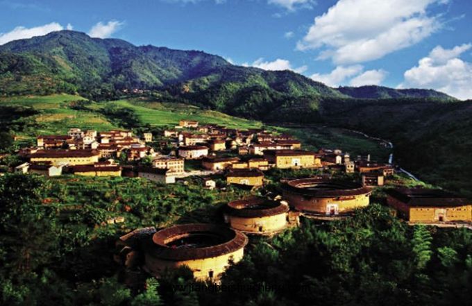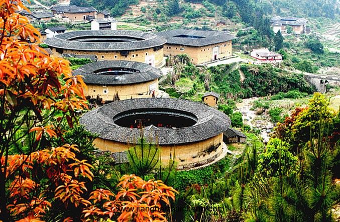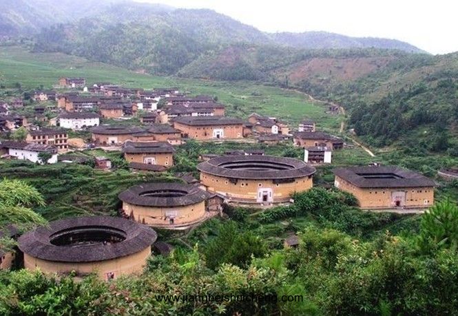 初溪村徐氏三世祖建于明永樂(lè)十七年(公元一四一九年),距今五百八十余年,為永定現(xiàn)存圓樓中年代久遠(yuǎn)又結(jié)構(gòu)特殊的一座。一般圓樓,小的設(shè)置兩處公共樓梯,大的設(shè)置四處樓梯,底層相通且層層環(huán)廊通達(dá),相互往來(lái),版權(quán)所有山東聊城聊之旅國(guó)際旅行社有限公司,轉(zhuǎn)載必究!十分方便。唯獨(dú)此樓,按底層每戶從一樓到四樓各自安裝樓梯,各層通道用木板隔開,七十二道樓梯把全樓分割成七十二個(gè)獨(dú)立的單元。房間、樓梯、隔墻全用杉木材料構(gòu)建,全靠鄰隼頭銜接,不用一枚鐵釘,竟也穿越了近六個(gè)世紀(jì)的風(fēng)霜雨雪,與厚達(dá)二米的生土墻一起依然挺立。初溪土樓群形成于13世紀(jì)初,同樣依山而建,土樓與層層梯田構(gòu)成壯麗景觀,氣勢(shì)磅礴恢宏。初溪原名粗溪,意即粗溪,有著粗心大意的含義,由于寓意不好,所以改名--初溪。集慶樓堪稱初溪土樓群的代表,由經(jīng)營(yíng)紙業(yè)的徐姓人所建,建筑規(guī)模比周遭的要大得多。土樓以隔板分隔成72個(gè)單位,與上述的土樓設(shè)計(jì)不同。與別處土樓不同的是,樓內(nèi)沒(méi)有水井,只能從樓旁的河邊打水,而且僅得一道大門,與其他土樓有3至4道大門不同。從對(duì)面山頭的觀光亭能一覽依山而建的初溪土樓群,土樓或大或小,或方或圓,一覽無(wú)遺,景象叫人陶醉。 在此后數(shù)百年間陸續(xù)夯造的土樓,所有的樓層都是環(huán)環(huán)相通的。集慶樓這種聚族而居又彼此獨(dú)立的模式,在動(dòng)蕩年代里,既消除單門獨(dú)戶的恐懼心理,又避免了一般土樓沒(méi)有私密空間過(guò)度嘈雜的缺點(diǎn),實(shí)在是兩全其美的創(chuàng)造性設(shè)計(jì)。集慶樓的房間、樓梯、隔門全用杉木構(gòu)建,相鄰處全靠隼頭銜接,不用一枚鐵釘,在穿越將近600年的風(fēng)霜雨雪后,依然與厚達(dá)兩米的生土墻一起巍然屹立,顯得古老而不破敗。