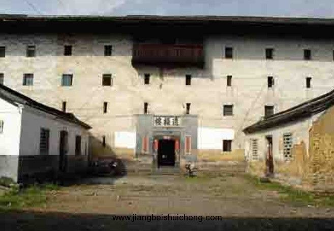 遺經(jīng)樓位于福建省龍巖市高陂鎮(zhèn)上洋村,建于清咸豐元年(1851年),方形土樓。外墻東西寬136米,南北長76米,占地10336平方米。其后座主樓高17米5層,是永定現(xiàn)有土樓中最高的樓房。主樓左右兩端分別垂直連著一座四層的樓房,并與主樓平行的四層前樓緊緊相接,圍成一個巨大的方樓,如此環(huán)繞形成一個大“口”字。里面又有一組小“口”字形建筑,形成一個獨特的“回”字形整體造型。真是“門中有門,樓中有樓,重重疊疊”,當?shù)厝硕挤Q它為“大樓廈”。 中間為祖堂。前樓一左一右建有兩所學堂,樓內子女可以在樓內就讀,學堂中間是個石坪,前建有大門樓,大門高6米寬4米。在主樓后面有花園一座、魚塘一口以及碓房、牛舍等附設建筑。遺經(jīng)樓共有280個房間。